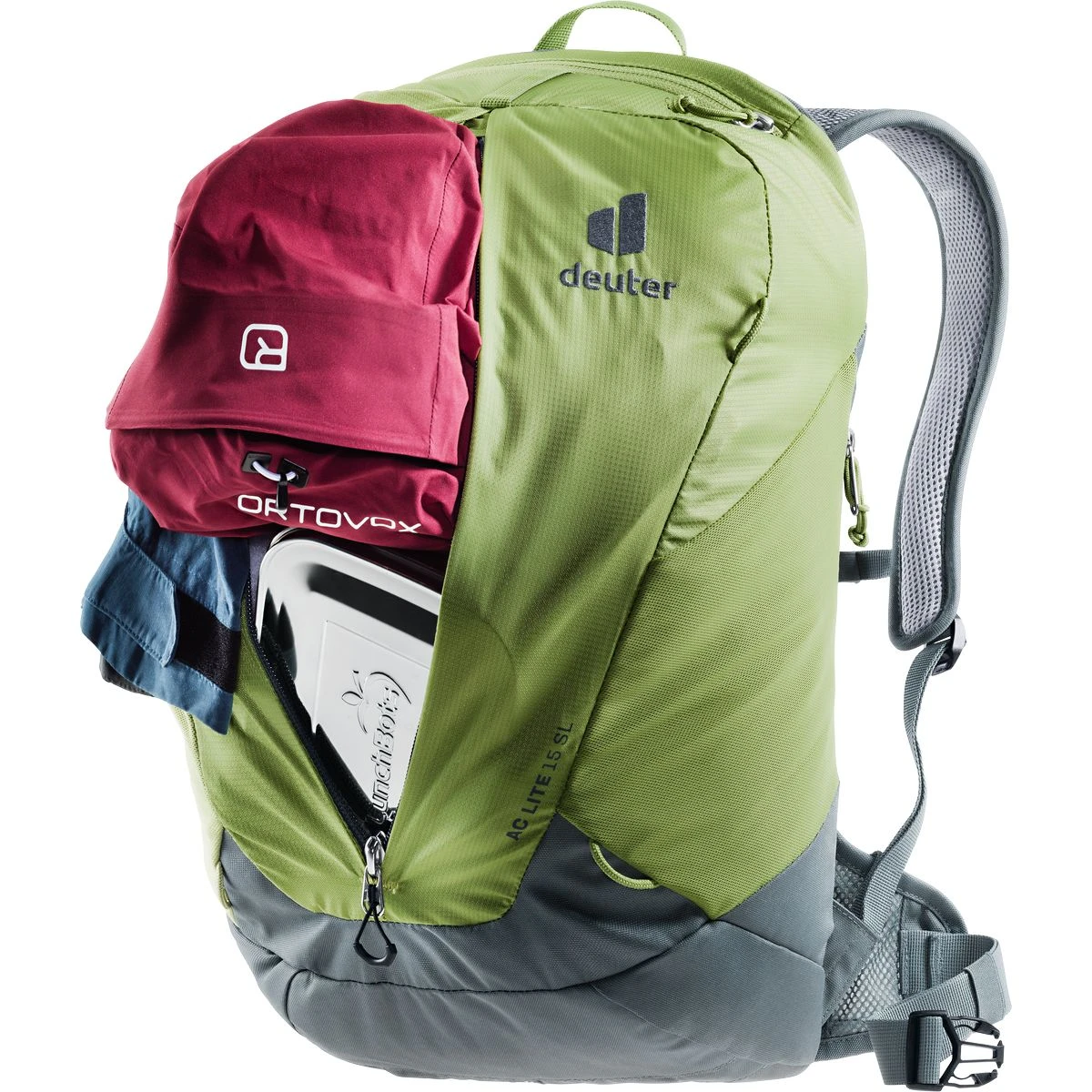 Der neue AC Lite, den es auch speziell für Frauen gibt, ist der perfekte Partner für Tageswanderungen. Der Wanderrucksack ist jetzt noch leichter und sorgt mit dem Aircomfort Rückensystem für maximale Belüftung. Die große, frontale Reißverschlussöffnung bietet einen super Überblick über das Gepäck. Smartphone oder auch Snacks lassen sich schnell in der elastischen und luftigen Seitentasche verstauen. Der Helm kann mit einer zusätzlichen Helmhalterung an die Loops außen am Rucksack fixiert werden.