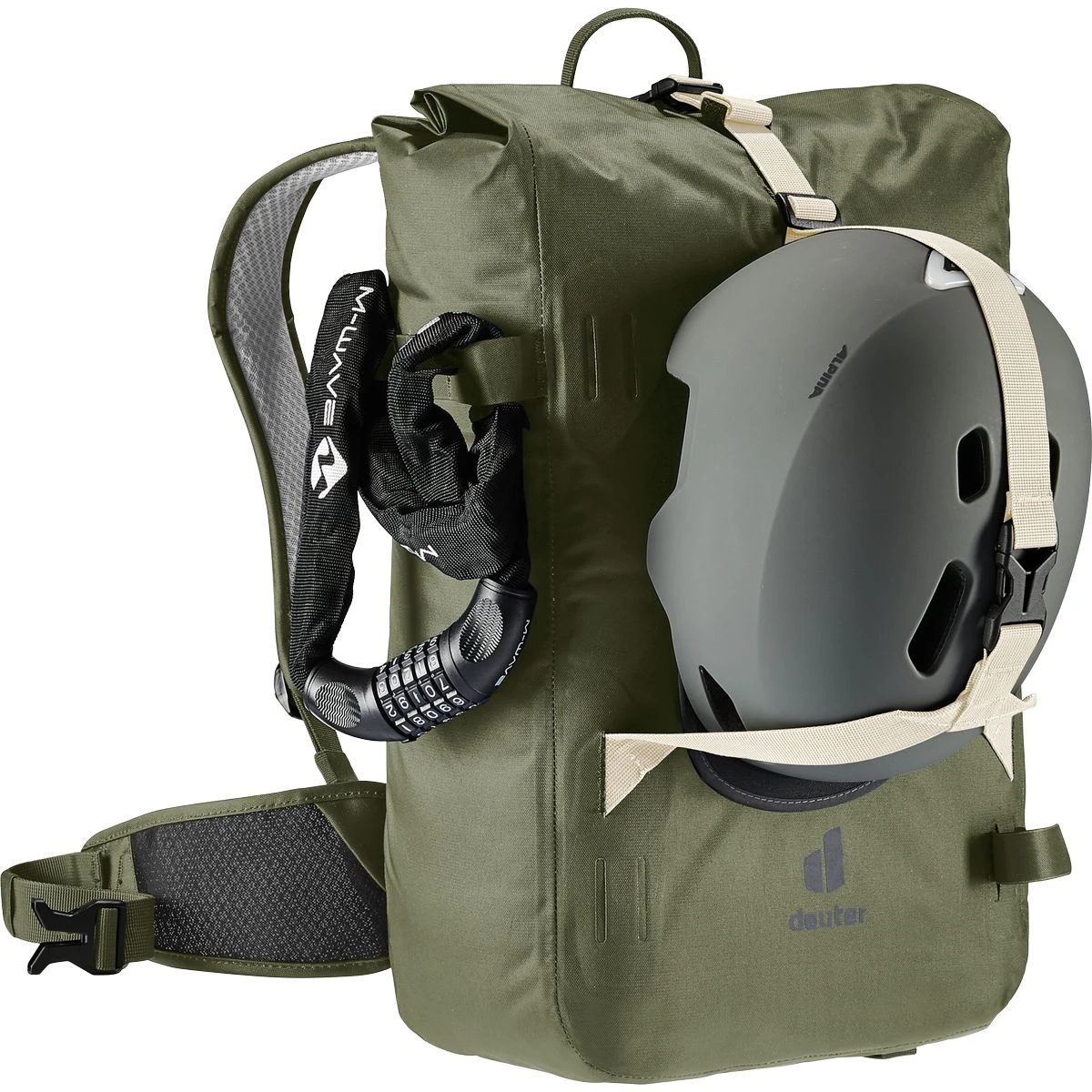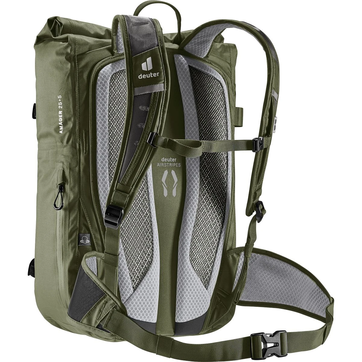 Der Großstadtdschungel fordert Gleichgewicht und ist schweißtreibend zugleich. Da muss der Lastenschwerpunkt des wasserdichten Rucksacks körpernah und die Luftzirkulation maximal sein. Dafür sorgen das komfortable Airstripes Tragesystem mit reduzierter Rückenauflage, das luftdurchlässige Air Spacer Mesh, die ergonomisch geformten, perforierten Schulterträger und Hüftflossen und der verstellbare Brustgurt. Im Inneren lassen sich dank Volumenerweiterung neben Arbeitsunterlagen auch Wechselklamotten für einen Aperitivo nach der Arbeit verstauen.