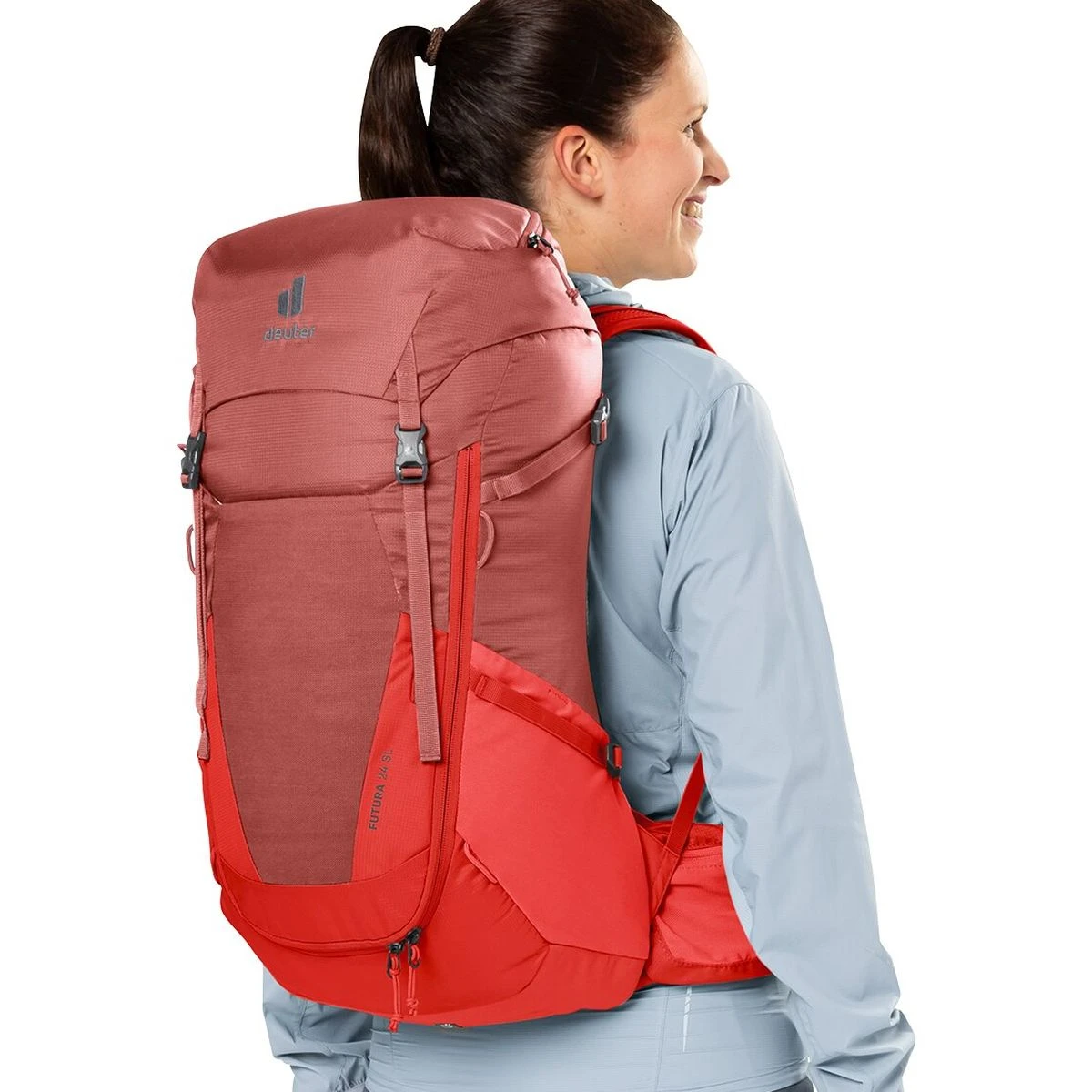 Der Futura SL ist aufgrund des kürzeren Rückens, der schmäleren Schulterträger und der konisch geformten Hüftflossen speziell auf die weibliche Anatomie abgestimmt und sorgt damit für erhöhten Tragekomfort auf längeren Tages- und Mehrtageswanderungen. Zudem bietet das neue Mesh des Aircomfort Rückensystem maximale Belüftung und verringert das Schwitzen damit um bis zu 25 %. Zudem verschafft die große Frontöffnung einen leichten Zugriff auf und einen guten Überblick über den Inhalt des Rucksacks. Das Hauptmaterial der Futura-Serie besteht aus bluesign(R)-zertifiziertem Material.