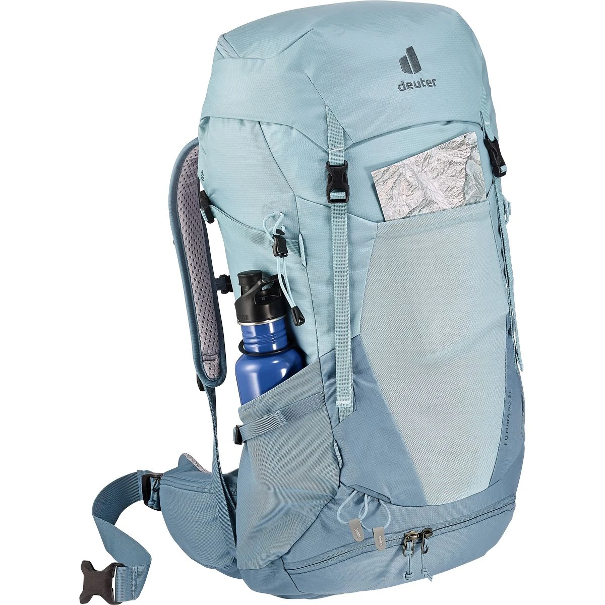 Der Futura SL ist aufgrund des kürzeren Rückens, der schmäleren Schulterträger und der konisch geformten Hüftflossen speziell auf die weibliche Anatomie abgestimmt und sorgt damit für erhöhten Tragekomfort auf längeren Tages- und Mehrtageswanderungen. Zudem bietet das neue Mesh des Aircomfort Rückensystem maximale Belüftung und verringert das Schwitzen damit um bis zu 25 %. Zudem verschafft das separate Bodenfach einen leichten Zugriff auf den Inhalt des Rucksacks. Das Hauptmaterial der Futura-Serie besteht aus bluesign(R)-zertifiziertem Material.
