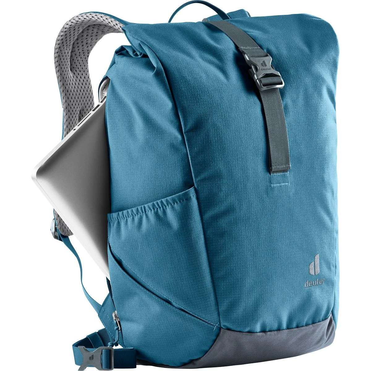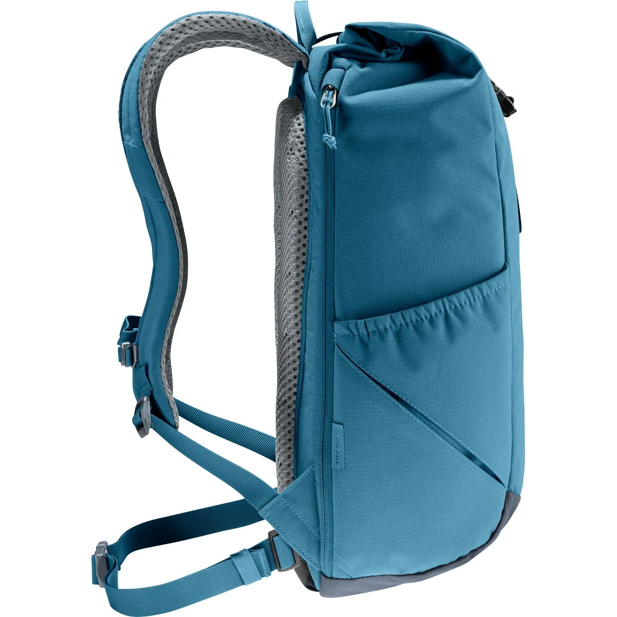 Dank perforierter, ergonomischer Schulterträger und geringer Rückenauflage des Airstripes Rückensystems punktet der Stepout mit maximaler Luftzirkulation und hohem Tragekomfort. Die Roll-Top Volumenerweiterung, das seitliche Handyfach und die elastische Seitentasche sorgen für schnellen Zugriff auf wichtige Dinge. Im Inneren bieten Dokumenten- und Laptopfach sowie Trinkflaschen-Halterung eine gute Organisation. Der Stoff des PFC-freien, mit dem Grünen Knopf zertifizierten bluesign(R) Produkts besteht aus 26 recycelten 0,5 Liter PET Flaschen und wird nach dem bluesign(R) Standard hergestellt.
