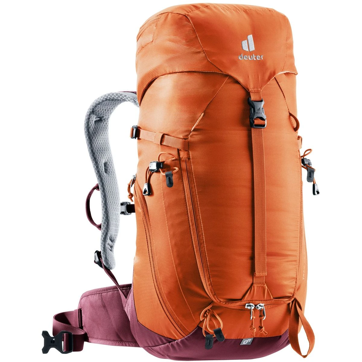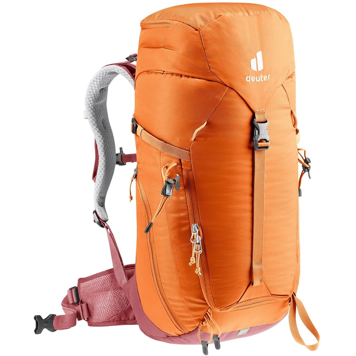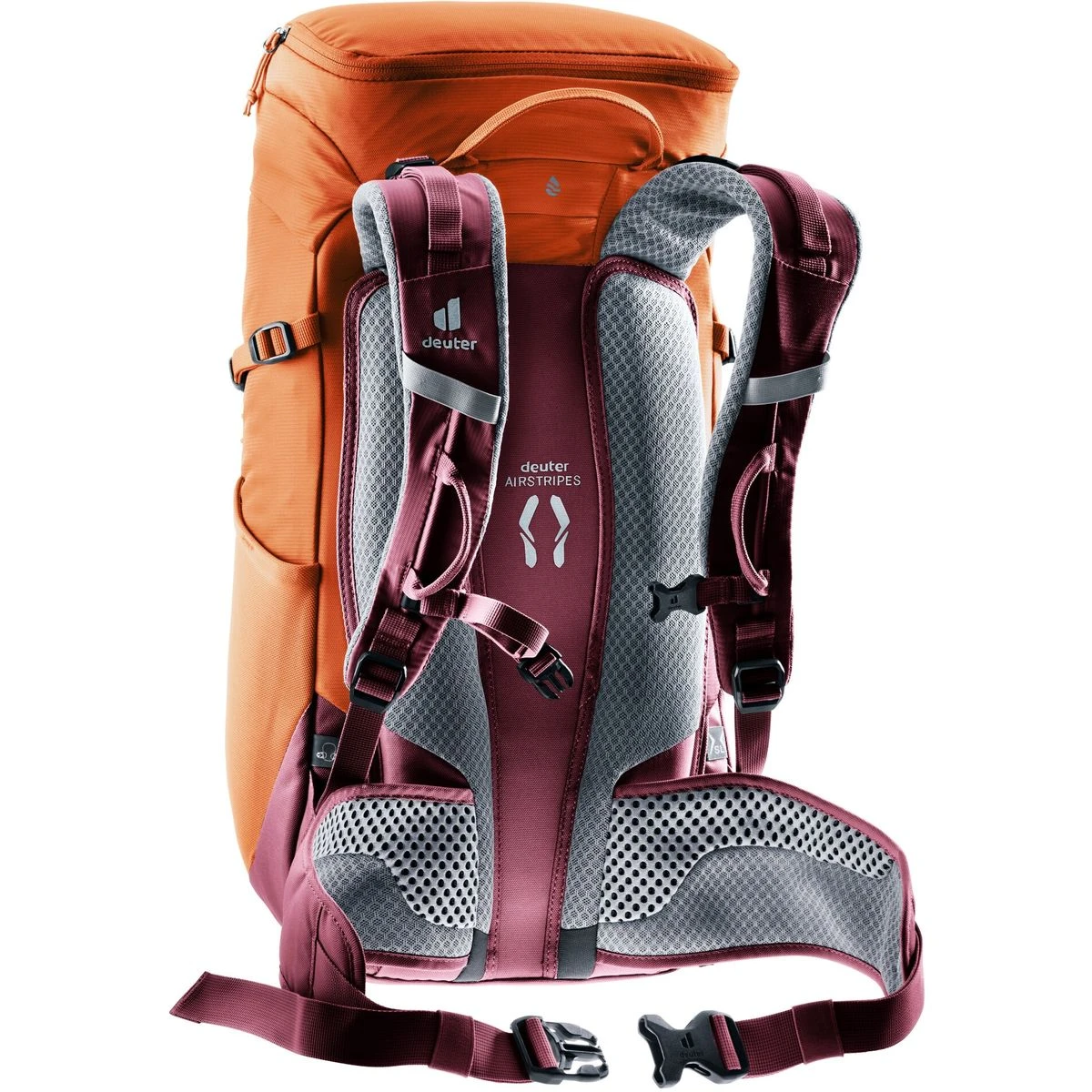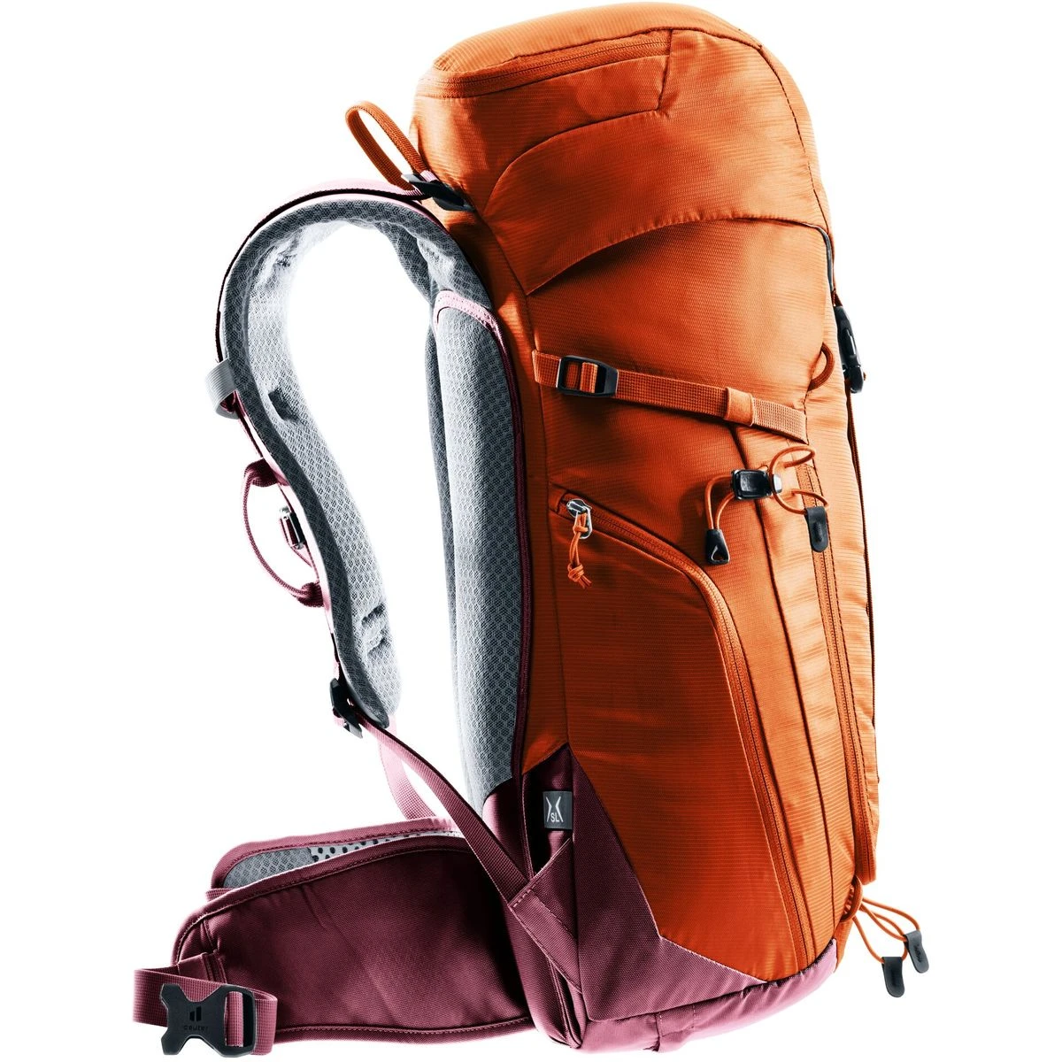 Das Airstripes Rückensystem mit geringer Rückenauflage und großen Belüftungskanälen sowie die perforierten Schulterträger und Hüftflossen sorgen für optimale Luftzirkulation, eine körpernahe Gewichtsverteilung und damit einen kompakten Sitz in jedem Terrain. Die flache Deckelkonstruktion bietet gute Kopffreiheit – auch mit Helm. Dank Fixierungen an den Schulterträgern sind die Karabiner des Klettersteigsets stets griffbereit. Zudem sind Ausrüstungsgegenstände und Material dank großem Reißverschluss-Frontzugang und Seitentaschen schnell zur Hand.