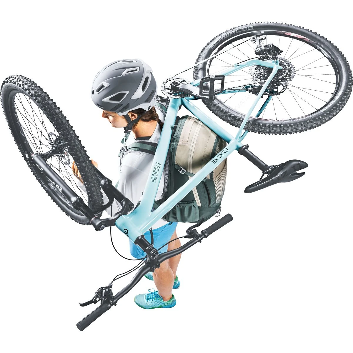 - Carrying Guard: um das Bike in Trage-Passagen fest auf dem Rucksack zu tragen