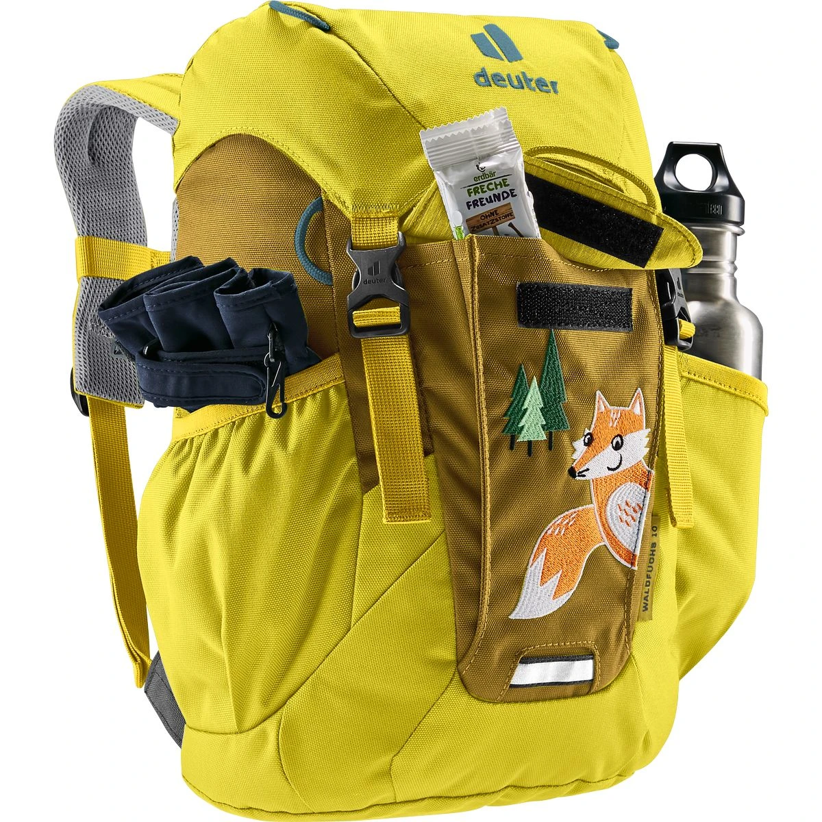 Der super robuste Waldkindergarten-Rucksack, empfohlen von und gemeinsam entwickelt mit dem Landesverband Wald- und Naturkindergärten in Bayern e.V., lässt sich dabei natürlich noch immer kinderleicht bedienen und mit allem Überlebenswichtigen beladen: Trinkflasche, Brotzeit, Säge, Matschhose und alle gefundenen Schätze.